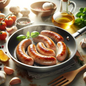 - Description: In a pan, cook the sausage over medium heat until browned.