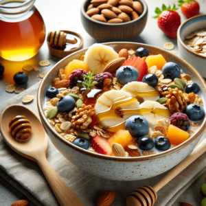 • Description: Top the cereal with your preferred toppings like fruits, nuts, and seeds. Sweeten with honey or maple syrup if desired.