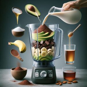 2. Blend Base Ingredients: In a blender, combine the avocado, cocoa powder, banana, and a pinch of salt.