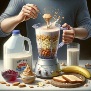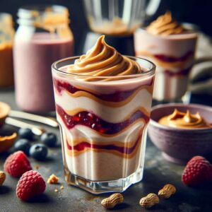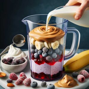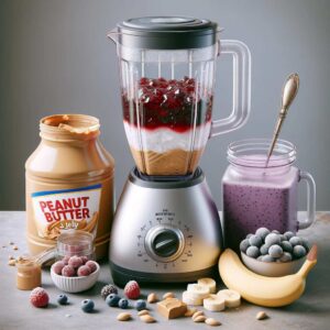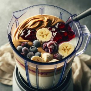 1. Blend Base Ingredients: In a blender, combine the peanut butter, jelly or jam, banana, and frozen berries.